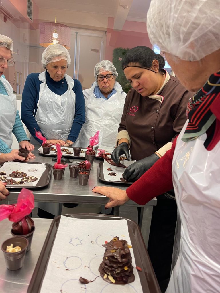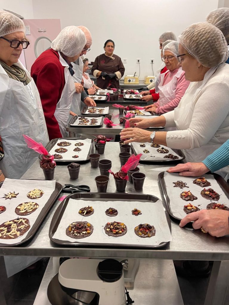 Durante a visita, os participantes tiveram a oportunidade de conhecer o processo de produção do chocolate artesanal, bem como as técnicas e saberes associados a esta atividade, num momento de aprendizagem, partilha e convívio.